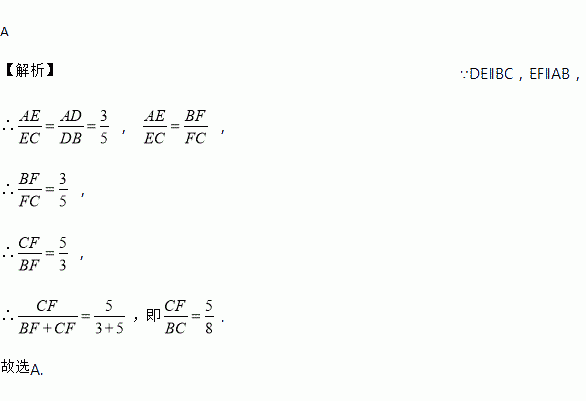 如图,在△ABC中,点D、E、F分别是边AB、AC、BC上的点,ED∥AB,EF∥AB,且AD:DB=3:5,那么CF:CB等于( )