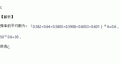摸到白球的频率 | 0.582 | 0.64 | 0.5805 | 0.5908 | 0.6053 | 0.601 |