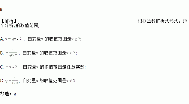 下列函数中,自变量的取值范围是![]()