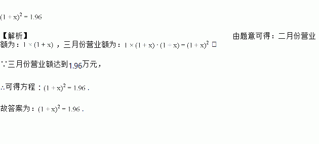 某公司一月份营业额为万元,三月份营业额达到万元,若设该公司二、三月份营业额的平均增长率为,则可列出方程为__________.