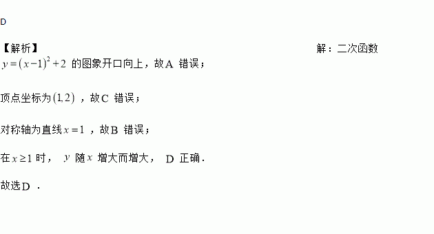 C. 顶点坐标是 D. 当时, 随增大而增大
