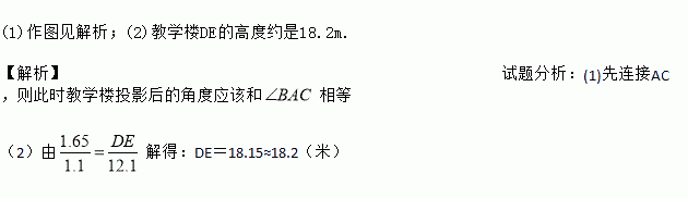 (1)请你在图中画出此时教学楼DE在阳光下的影子DF;