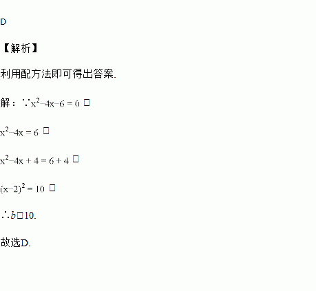 将一元二次方程x2-4x-6=0化成(x-a)2=b的形式,则b等于( )
