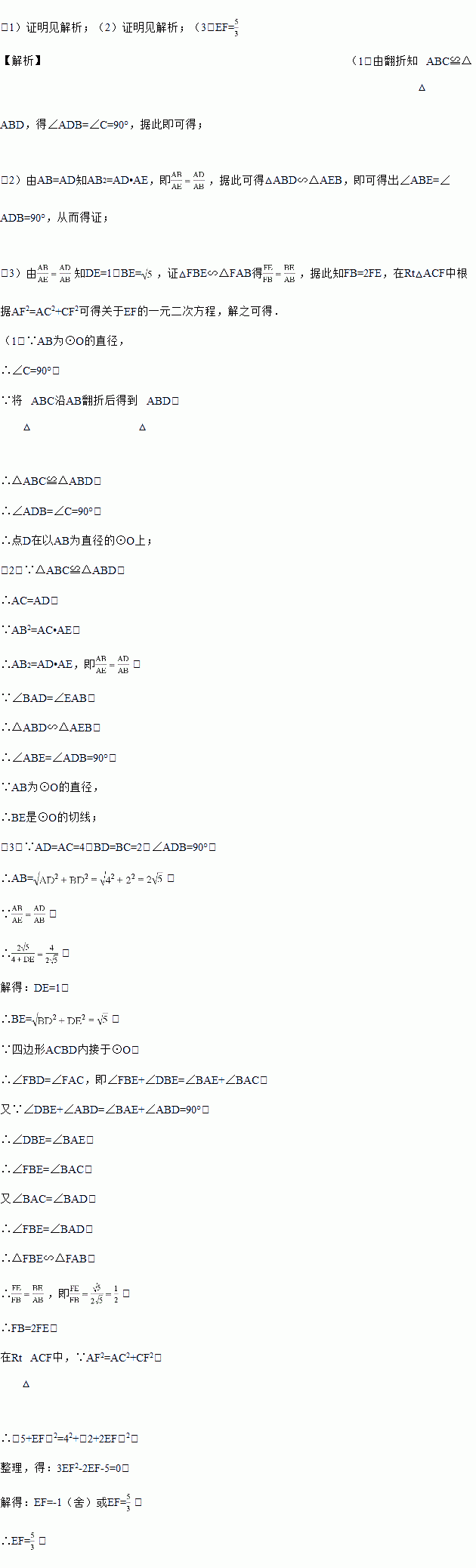 (3)在(2)的条件下,分别延长线段AE、CB相交于点F,若BC=2,AC=4,求线段EF的长.