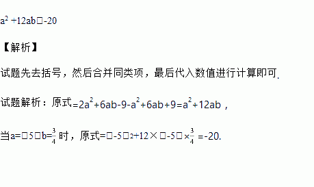 先化简,再求值:2(a2+3ab﹣4.5)﹣(a2﹣6ab﹣9),其中a=﹣5,b=.