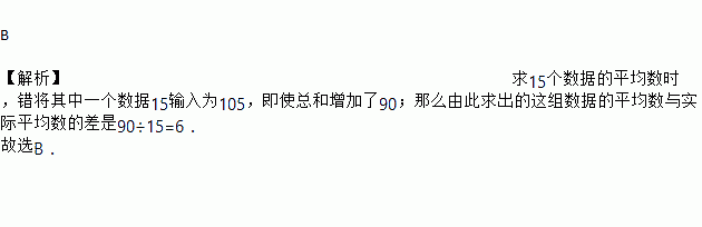 某同学使用计算器求15个数据的平均数时,错将一个数据15输成105,那么由此求出的平均数与实际平均数的差是( )