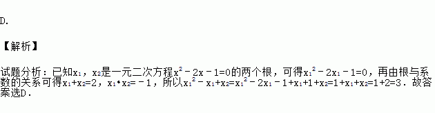 若x1,x2是一元二次方程x2﹣2x﹣1=0的两个根,则x12﹣x1+x2的值为( )