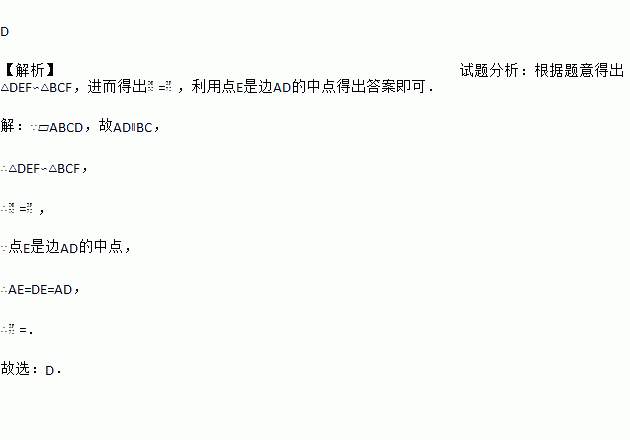 如图,?ABCD中,点E是边AD的中点,EC交对角线BD于点F,则EF∶FC等于( )