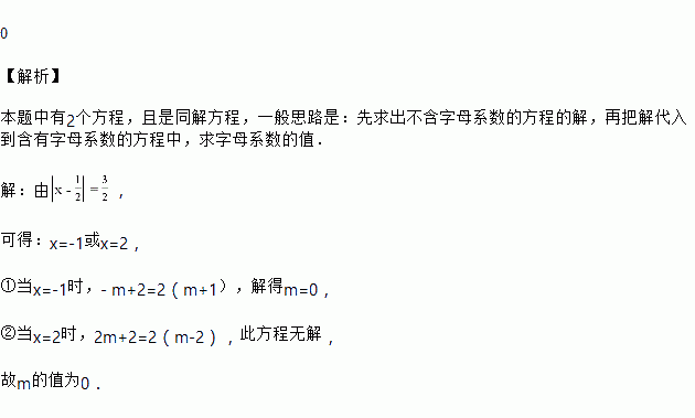 若关于x的方程mx+2=2(m-x)的解满足方程,那么m的值为________.