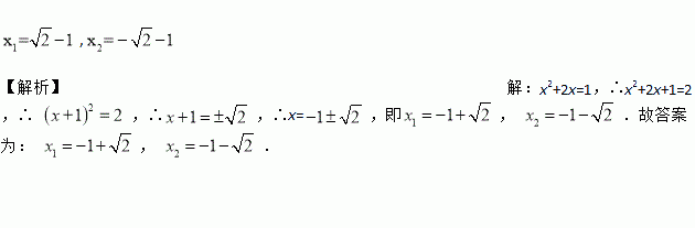 方程x2+2x=1的解是_______________________.