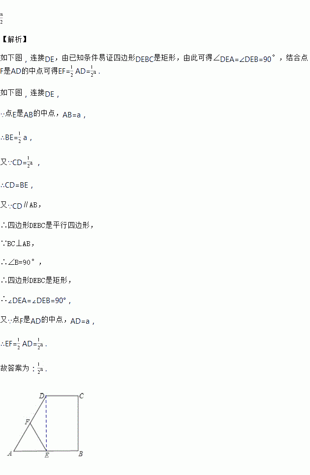 如图,在四边形ABCD中,DC∥AB,CB⊥AB,AB=AD=a,CD=,点E,F分别为线段AB,AD的中点,则EF=_____.