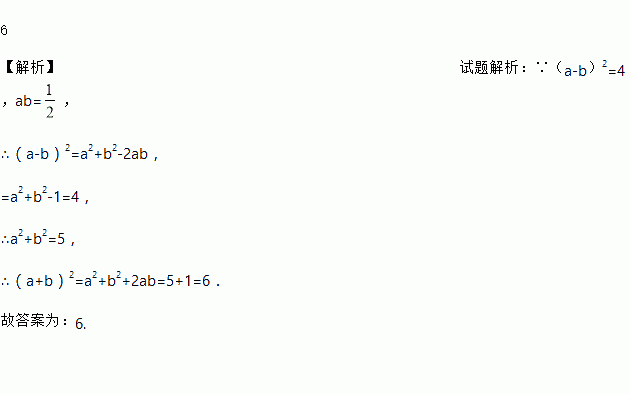 若(a-b)2=4,ab=,则(a+b)2=__.