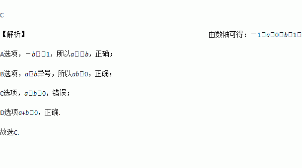 A. a>-b B. ab<0 C. a-b>0 D. a+b>0