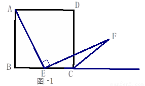 如图1所示,四边形ABCD是正方形,点E是边BC的中点且∠AEF=90°,EF交正方形外角平分线CF于点F,.