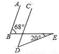 如图,AB∥CD,∠B=68°,∠E=20°,则∠D的度数为( )