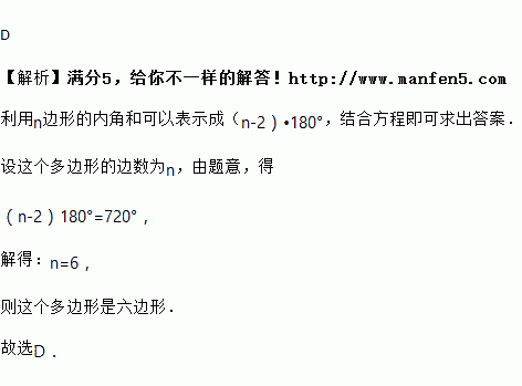 若一个多边形的内角和为 720°,则这个多边形是( )