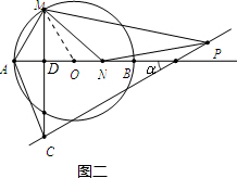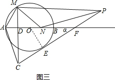 分析 (1)根据AM=AC,MC垂直平分AO,OM=OA,可以求得△MAO的形状,然后根据点C在圆O上,AP是圆O的直径,从而可以求得α的值;
