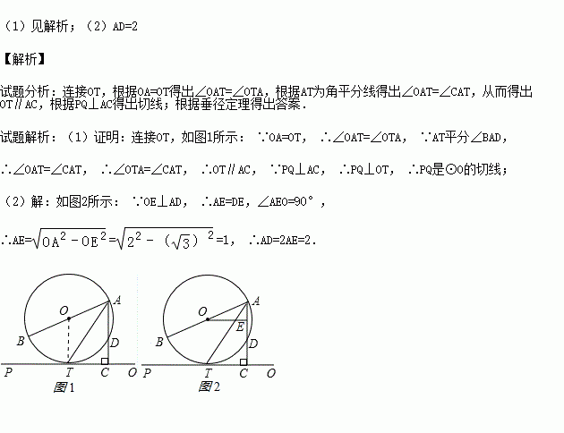 如图,AB为⊙O的直径,D、T是圆上的两点,且AT平分∠BAD,过点T作AD的延长线的垂线PQ,垂足为C.