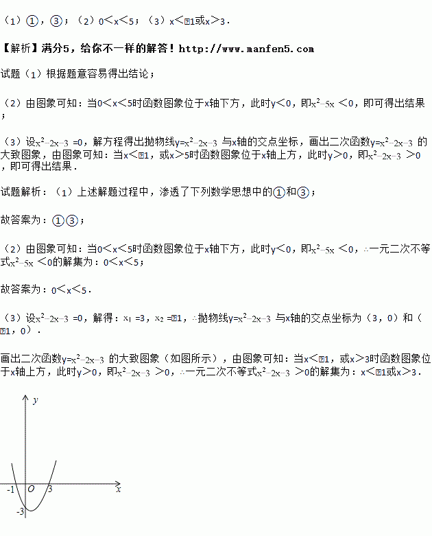 的大致图象(如图所示),由图象可知:当x<0,或x>5时函数图象位于x轴上方,此时y>0,即