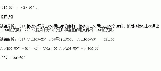 (1)若∠DOF=25°,求∠AOB的度数.