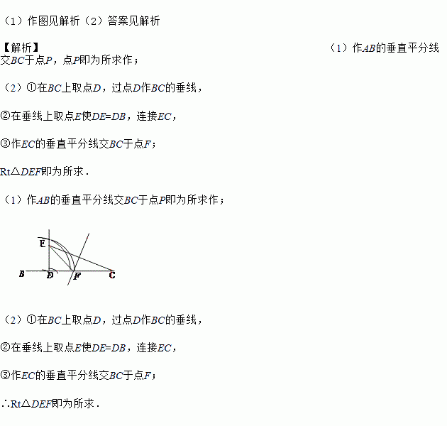 (1)在边BC上确定一点P,使得PA+PC=BC;