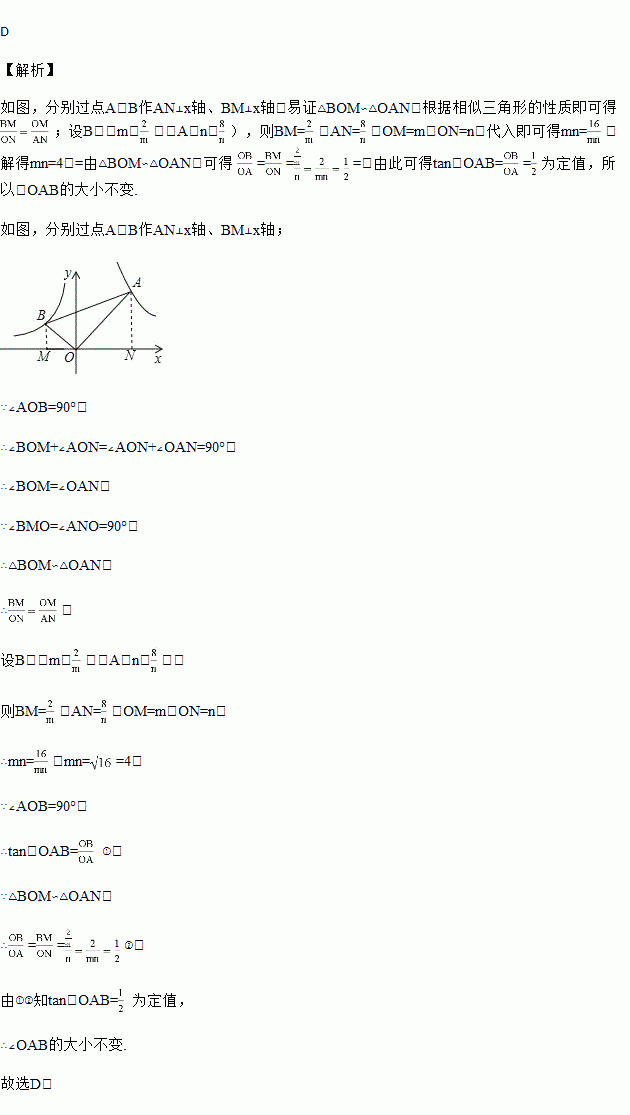 的图象交于B、A两点,则tan∠OAB的值的变化趋势为( )