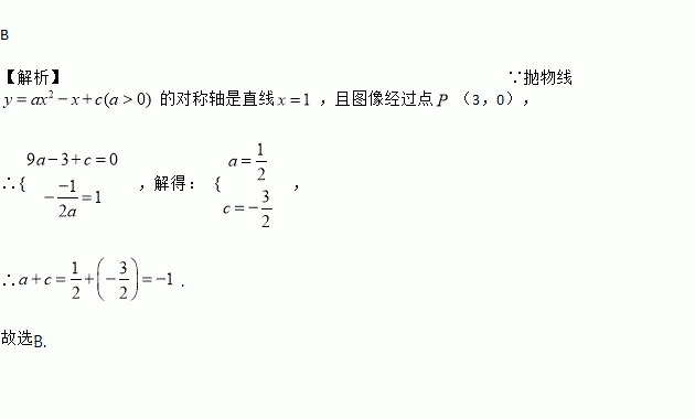 如图所示,抛物线y=ax2-x+c(a>0)的对称轴是直线x=1,且图像经过点