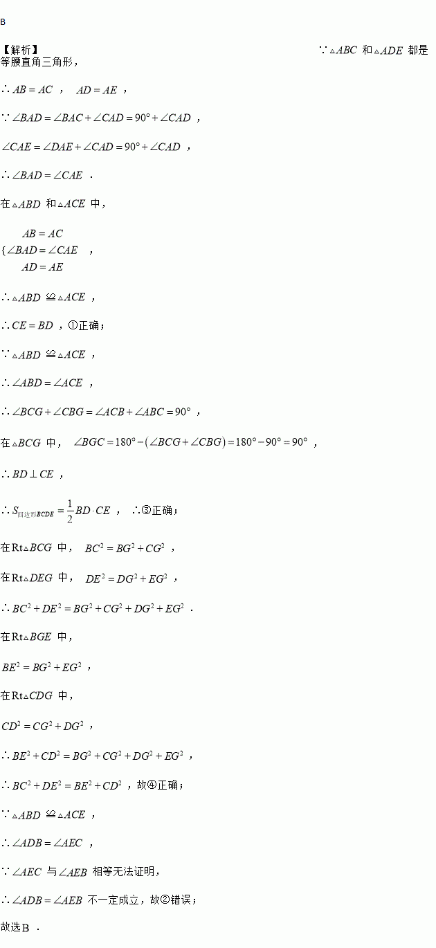 B ¡¾½âÎö¡¿¡ßºÍ¶¼ÊǵÈÑüÖ±½ÇÈý½ÇÐΣ¬ ¡à£¬ £¬ ¡ß£¬ £¬ ¡à£® ÔÚºÍÖУ¬ £¬ ¡à¡Õ£¬ ¡à£¬¢ÙÕýÈ·£» ¡ß¡Õ£¬ ¡à£¬ ¡à£¬ ÔÚÖУ¬ £¬ ¡à£¬ ¡à£¬ ¡à¢ÛÕýÈ·£» ÔÚÖУ¬ £¬ ÔÚÖУ¬ £¬ ¡à£® ÔÚÖУ¬ £¬ ÔÚÖУ¬ £¬ ¡à£¬ ¡à£¬¹Ê¢ÜÕýÈ·£» ¡ß¡Õ£¬ ¡à£¬...