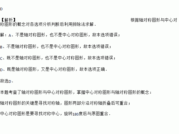 下列图形中既是轴对称图形又是中心对称图形的是 ( )