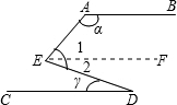 解:过点E作EF∥AB,