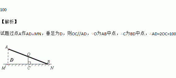 如图,O为跷跷板AB的中点,支柱OC与地面MN垂直,垂足为点C,且OC=50cm,当跷跷板的一端B着地时,另一端A离地面的高度为 cm.