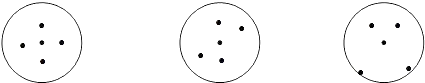 下面是三个圆.请按要求在各图中分别添加4个点.使之满足各自要求.