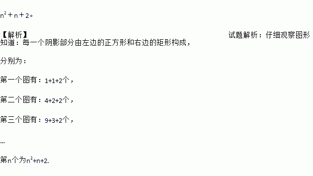 下图是在正方形网格中按规律填成的阴影,根据此规律,则第n个图中阴影部分小正方形的个数是 .