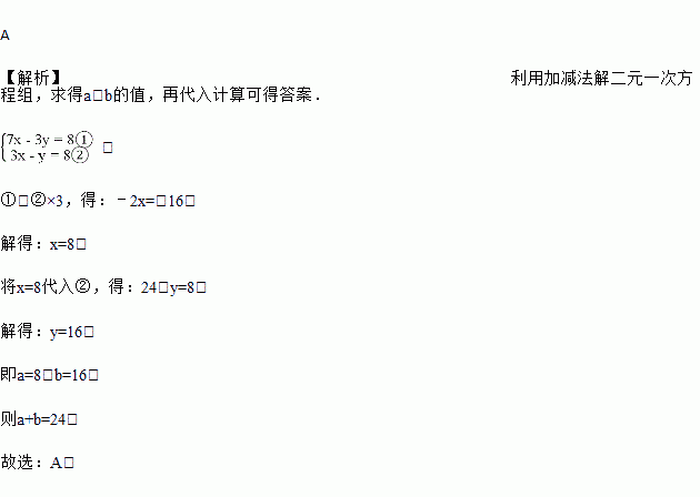 若二元一次联立方程式的解为x=a,y=b,则a+b之值为何?( )