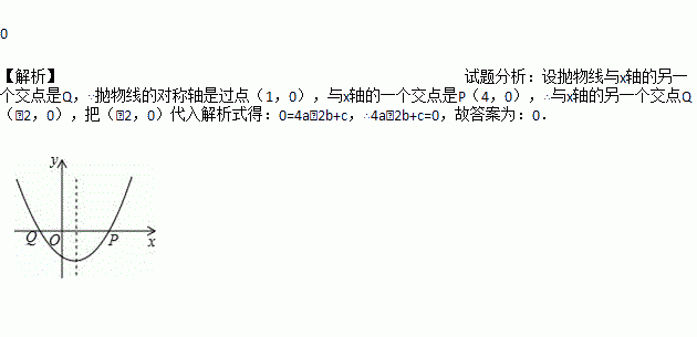如图,抛物线y=ax2+bx+c(a>0)的对称轴是过点(1,0)且平行于y轴的直线,若点P(4,0)在该抛物线上,则4a﹣2b+c的值为 .