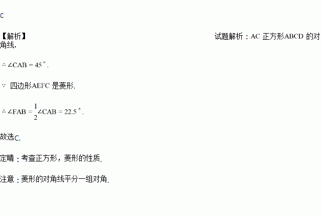 如图,正方形ABCD的对角线AC是菱形AEFC的一边,则∠FAB等于( )