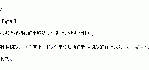 将抛物线y=2x2向上平移2个单位后所得抛物线的解析式是( )