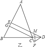 (2)在乙图中,当点D在BC的延长线上时,写出你的猜想并证明.