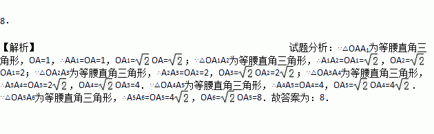 如图,在等腰Rt△OAA1中,∠OAA1=90°,OA=1,以OA1为直角边作等腰Rt△OA1A2,以OA2为直角边作等腰Rt△OA2A3,…则OA6的长度为_____.