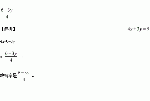 将方程4x+3y=6变形成用y的代数式表示x,则x=________。