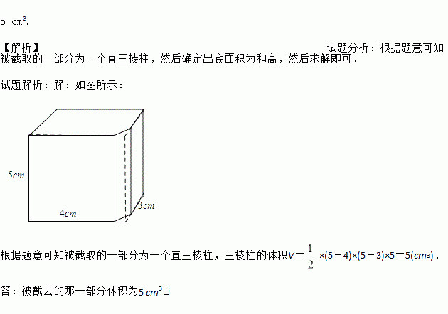 如图所示的正方体被竖直截去了一部分,求被截去的那一部分的体积.(棱柱的体积等于底面积乘以高)