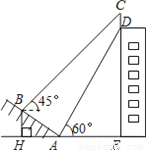 (本题满分10分)如图,某大楼的顶部竖有一块广告牌CD,小明在山坡的坡脚A处测得广告牌底部D的仰角为60°.沿坡面AB向上走到B处测得广告牌顶部C的仰角为45°,已知山坡AB的坡度,AB=10米,AE=15米.(测角器的高度忽略不计,结果精确到0.1米.参考数据: , )