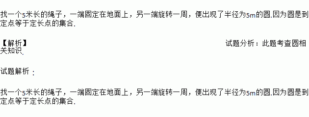 如何在操场上画一个半径为5m的圆,请说明你的理由?