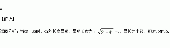 如图,⊙O的半径为5,弦AB=8,M是弦AB上的动点,则OM不可能为( )