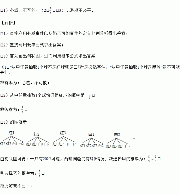 在一个不透明的盒子中装有大小和形状相同的3个红球和2个白球,把它们充分搅匀.