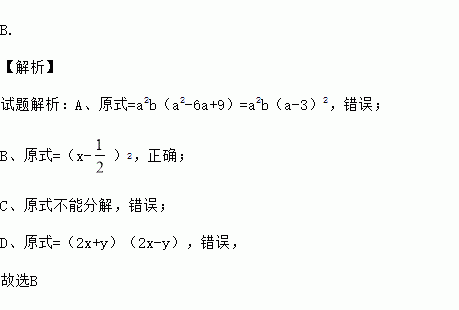 A.a4b-6a3b+9a2b=a2b(a2-6a+9)
