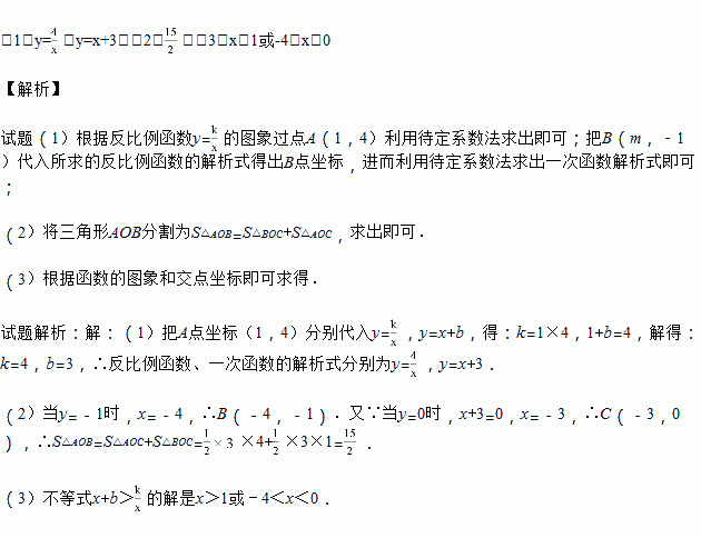 的图象与一次函数y=x+b的图象交于点A(1,4),点B(m,-1),