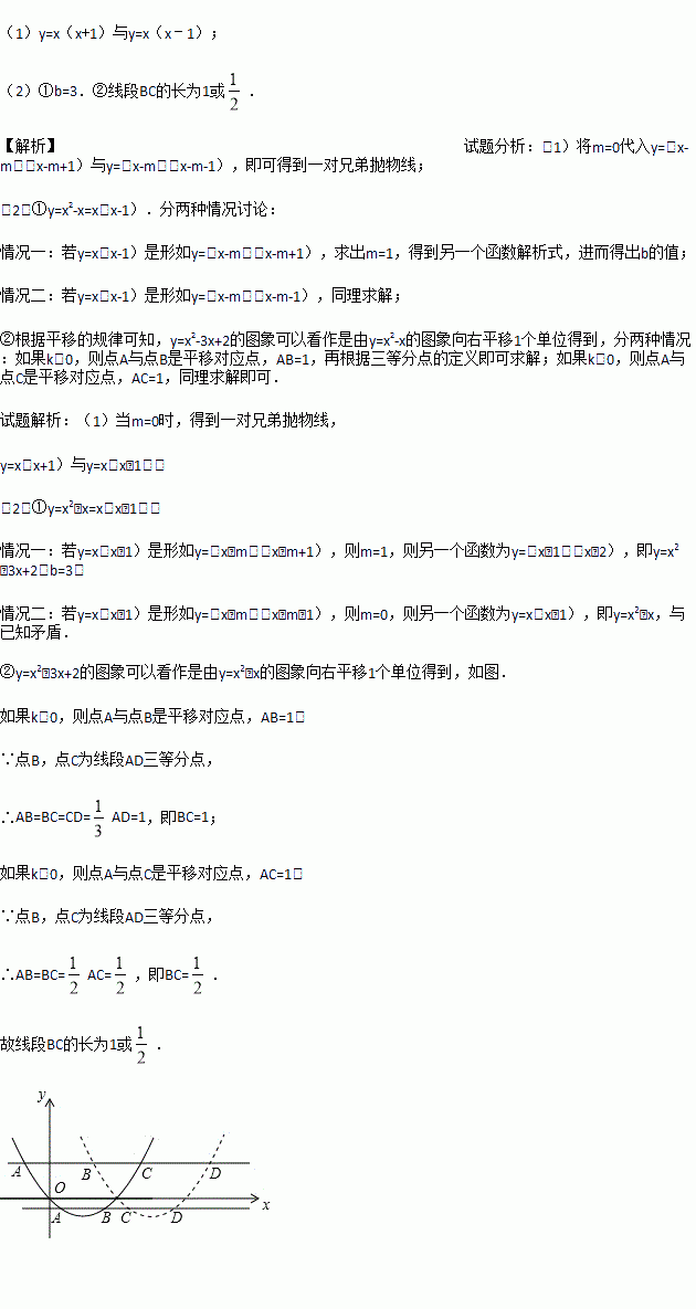 (2)若二次函数y=x2﹣x(图象如图)与y=x2﹣bx+2的图象是兄弟抛物线.