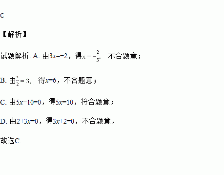 C. 由5x-10=0,得5x=10 D. 由2+3x=0,得3x+2=0