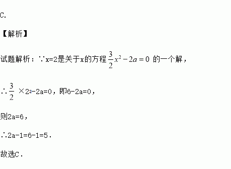已知x=2是关于x的方程的一个解,则2a-1的值是( )